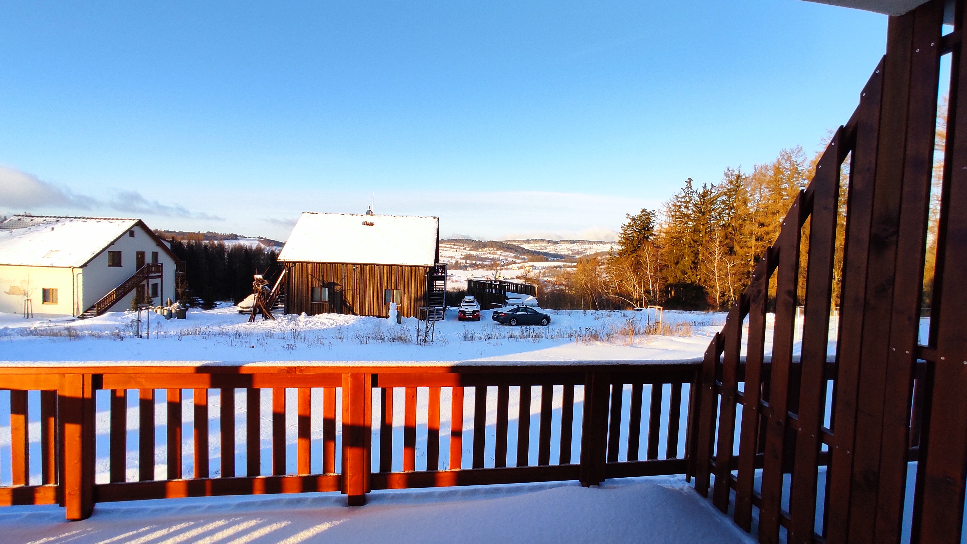 V teplých měsících jistě oceníte terasu - 15m2, s posezením a vířivkou s nádherným výhledem na okolní krajinu.