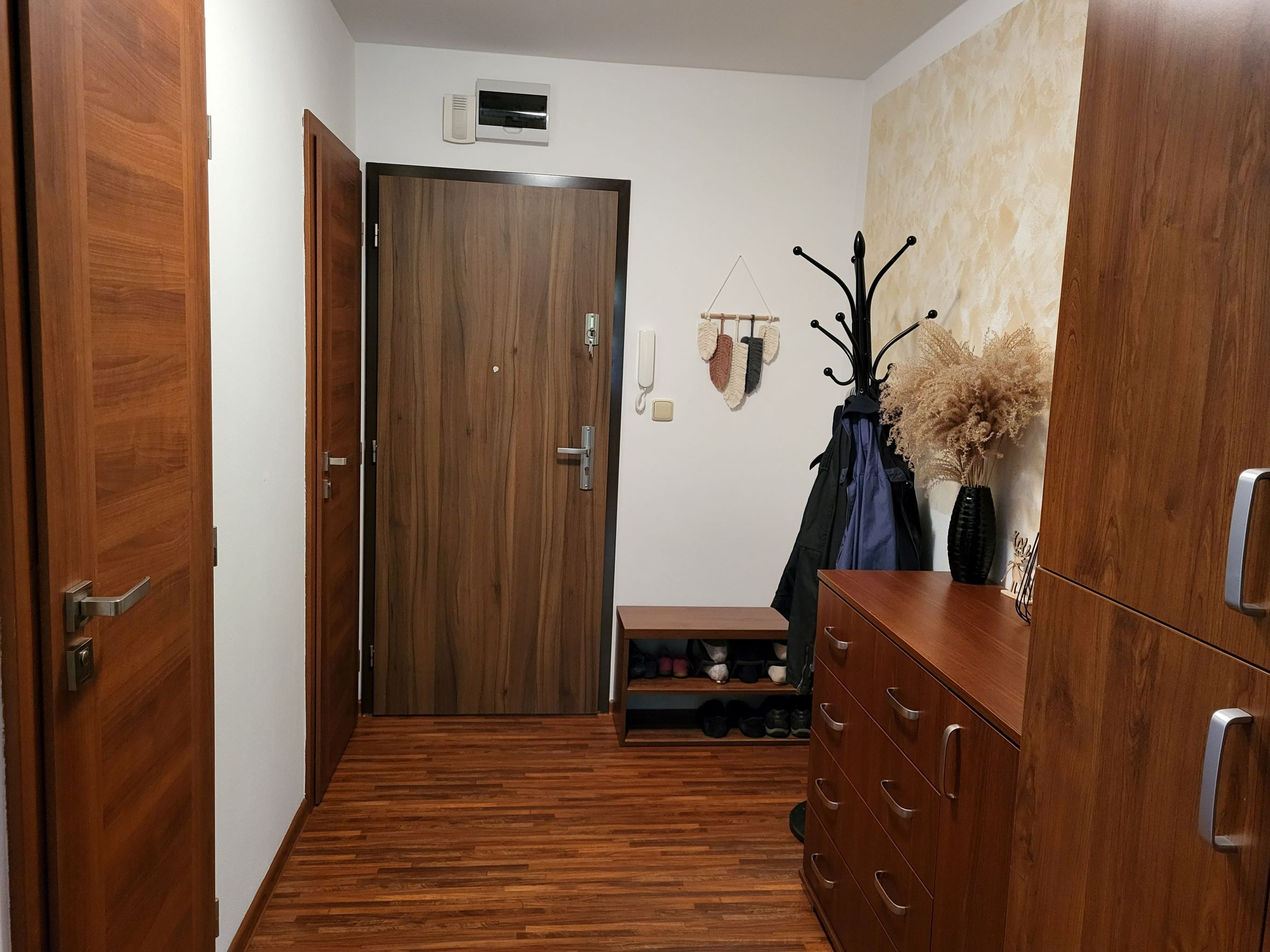 Byt je po celkové rekonstrukci, kdy byly provedeny nové rozvody elektřiny, omítky, stupačky schované v sádrokartonu, bezpečnostní dveře, v celém bytě je jednotná podlaha bez prahů což jistě ocení každý robotický vysavač, designově stejné všechny dveře a zárubně, také je sladěn nábytek na míru v ložnici a vstupní chodbě (zůstává součástí bytu). Součástí bytu je i nadprůměrně prostorný sklep s regály a pracovním stolem.
