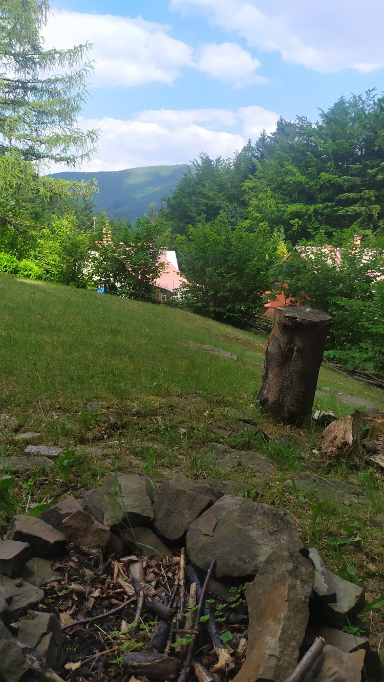 - velký stavební pozemek s výhledem na hory, může být se starým domem k demolici, na Valašsku