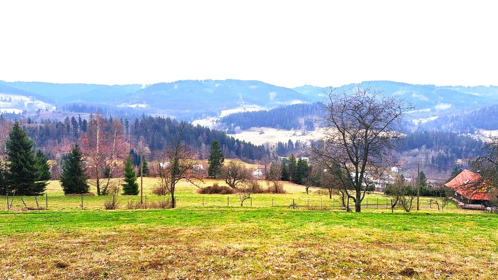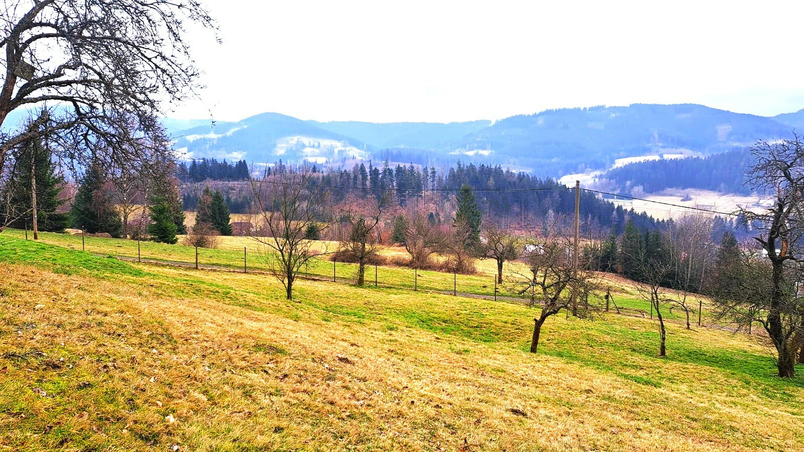 - velký stavební pozemek s výhledem na hory, může být se starým domem k demolici, na Valašsku