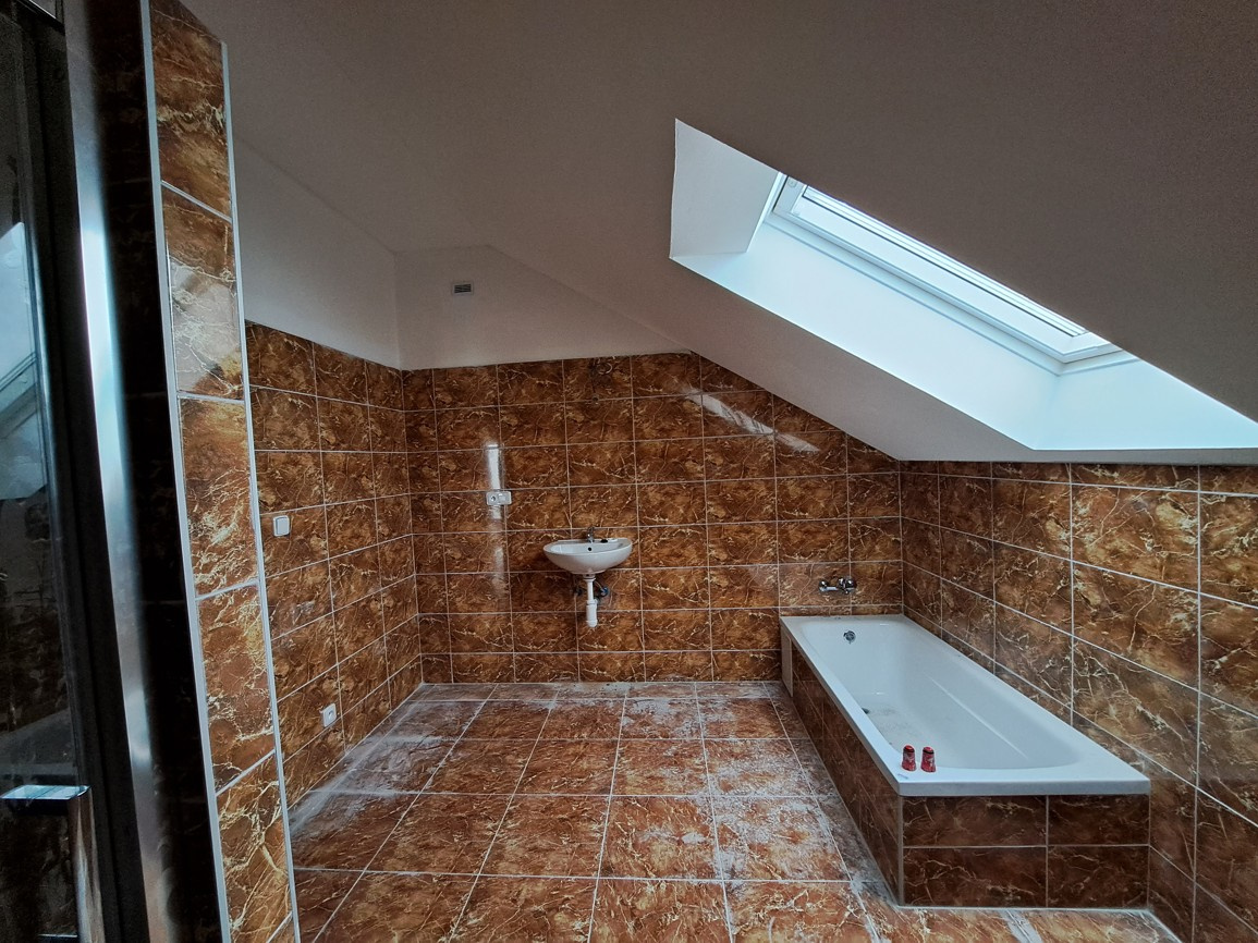 Nabízíme Vám k dlouhodobému pronájmu moderní novostavbu rodinného domu 142 m2 v Horní Datyni - Vratimov. Součástí domu je prostorná garáž pro dvě auta. Můžete u ní projít suchou nohou přímo domů .Dům je velmi prostorný a má masivní dřevěnou terasu v prvním patře, která zároveň kryje dlážděnou terasu v přízemí. Vstupem do domu vejdeme do oddělené předsíně, se kterou sousedí větší technická místnost. Dominantou přízemí je velký obývací pokoj s kuchyní a halou, který tvoří otevřený a vzdušný prostor. Odtud se dostanete přímo na zahradu, nebo do pracovny, koupelny s toaletou, komory a na schodiště vedoucí do haly v druhém podlaží. Všechny pokoje mají samostatný vstup, jsou neprůchozí. 2 opravdu velké velké pokoje, 1 menší, koupelna, kde je sprchový kout, vana, toaleta, umyvadlo.