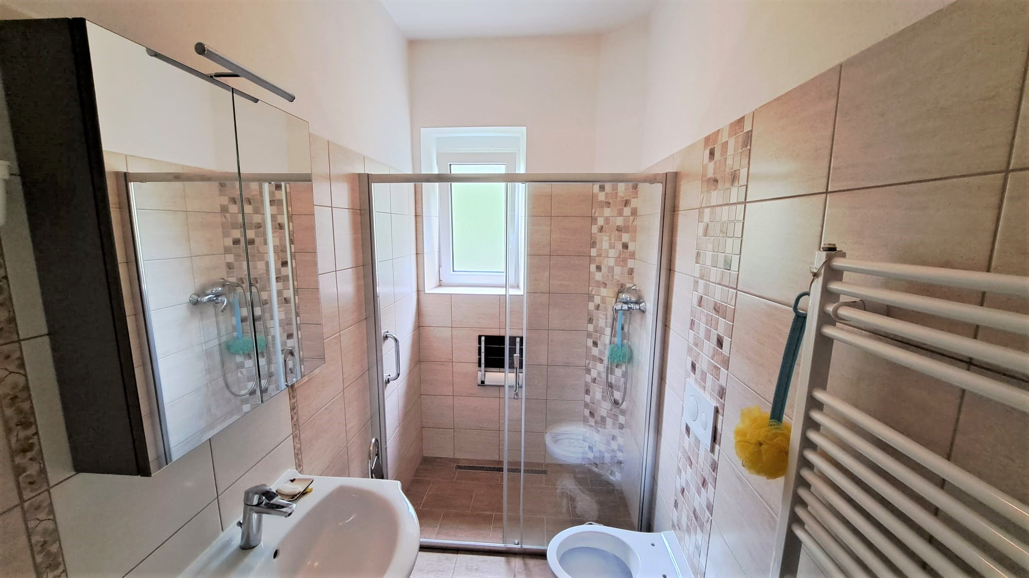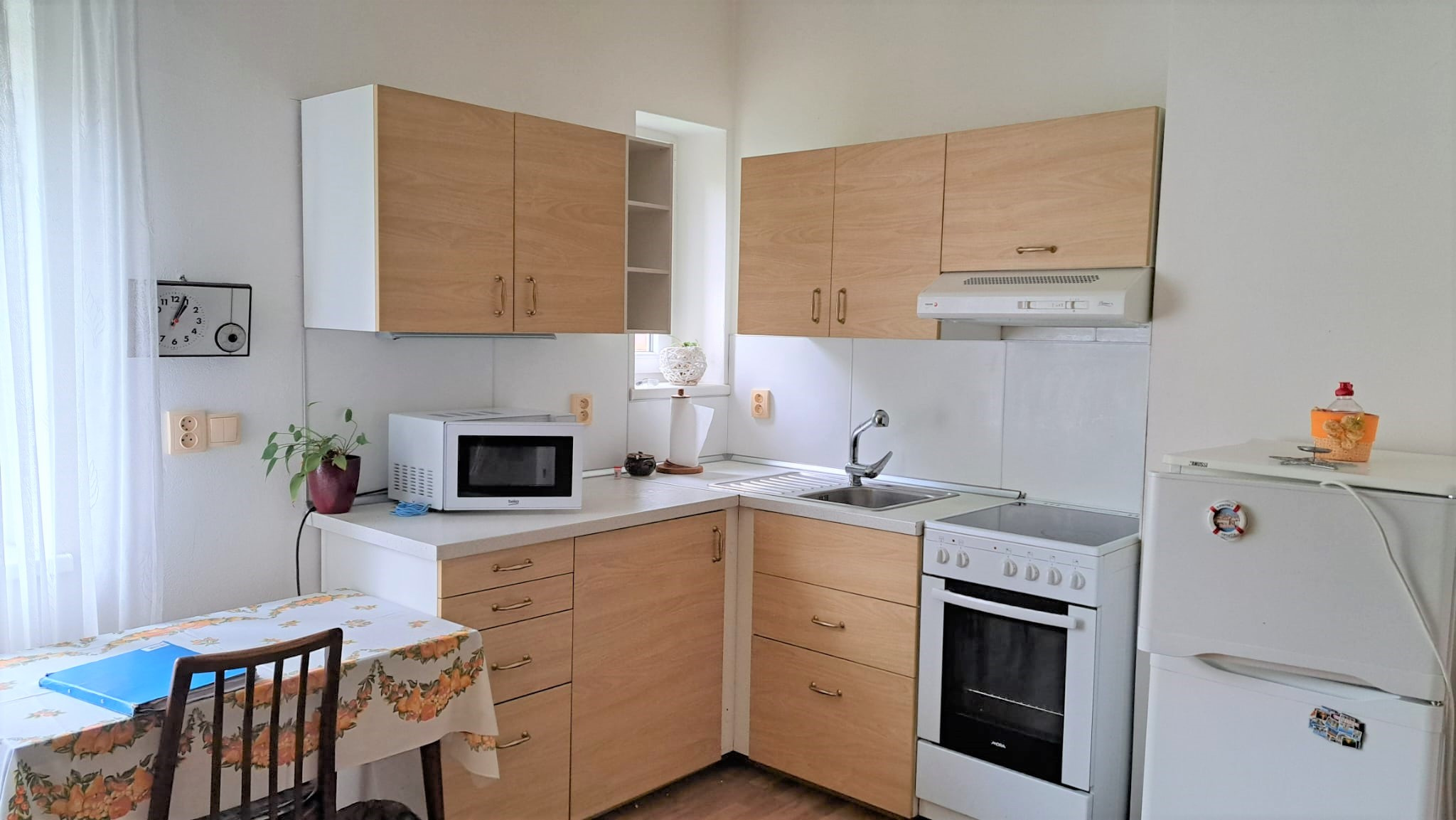 Pronájem bytu 2+kk v klidné části města, v cihlovém domě, ve zvýšeném přízemí. Byt je po kompletní rekonstrukci – podlahové elektrické vytápění s regulací pro každou místnost, rozvody elektřiny, koupelna, linka, bojler. Je vybaven některými spotřebiči (pračka, mikrovlnná trouba, sporák, lednička), vestavěnými skříněmi a starším nábytkem. V případě dohody je možno některý nábytek vyklidit. Obytná plocha 49 m2, plus plocha zděného sklepa 5 m2. Možnost využití společné kolárny a kočárkárny v suterénu. Nájemné ve výši 11.000,- Kč zahrnuje fond oprav, společné prostory, správu a zálohu na spotřebu studené vody ve výši 400 Kč/měsíčně. Záloha na spotřebu elektrické energie ve výši 3.510 Kč bude převedena na nájemce. Plyn není zaveden, vše funguje na elektřinu. Možnost ponechání internetového připojení včetně TV, platba 508 Kč. Celková platba měsíčně = 15.018 Kč s možností ovlivnit svou spotřebu a tím i platbu za elektřinu. Požadovaná kauce 22.000 Kč, provize zprostředkovatele 10.000 Kč. Byt je volný ihned. Za domem je možnost využití většího záhonu na pozemku města. Okna orientována k severozápadu. Parkování před domem.