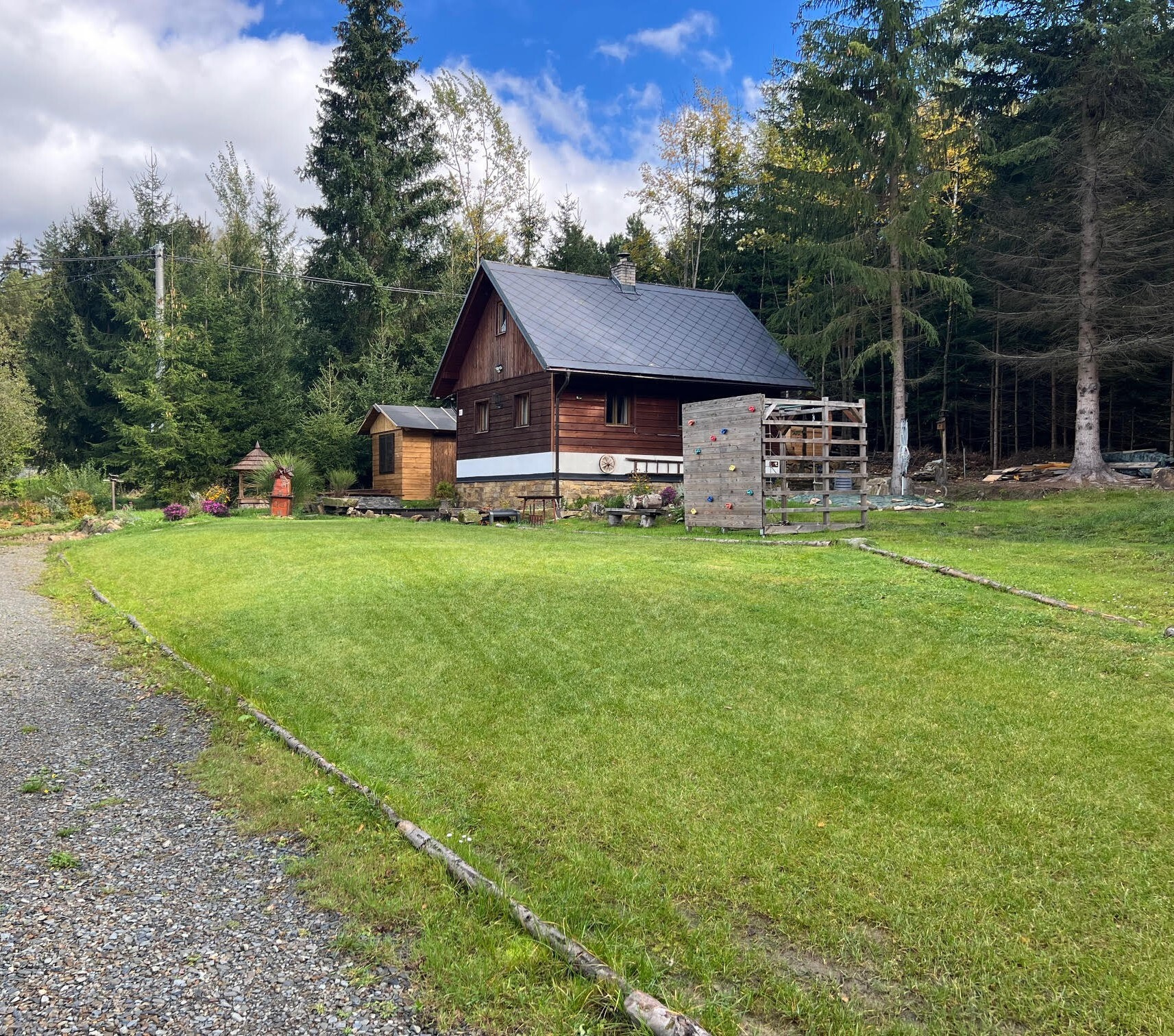 - chatu nebo chalupu k celoročnímu bydlení na klidném dostupném místě