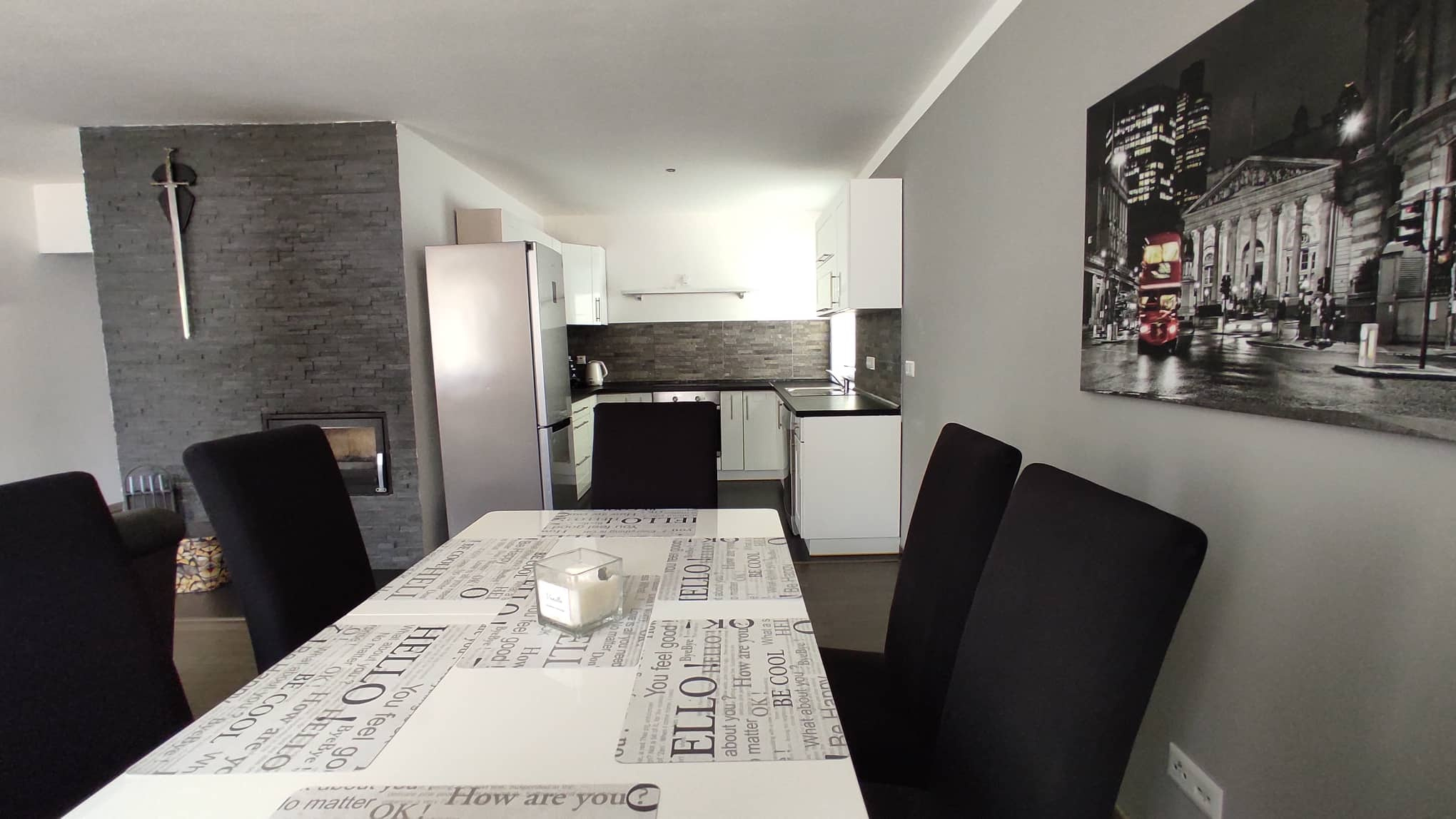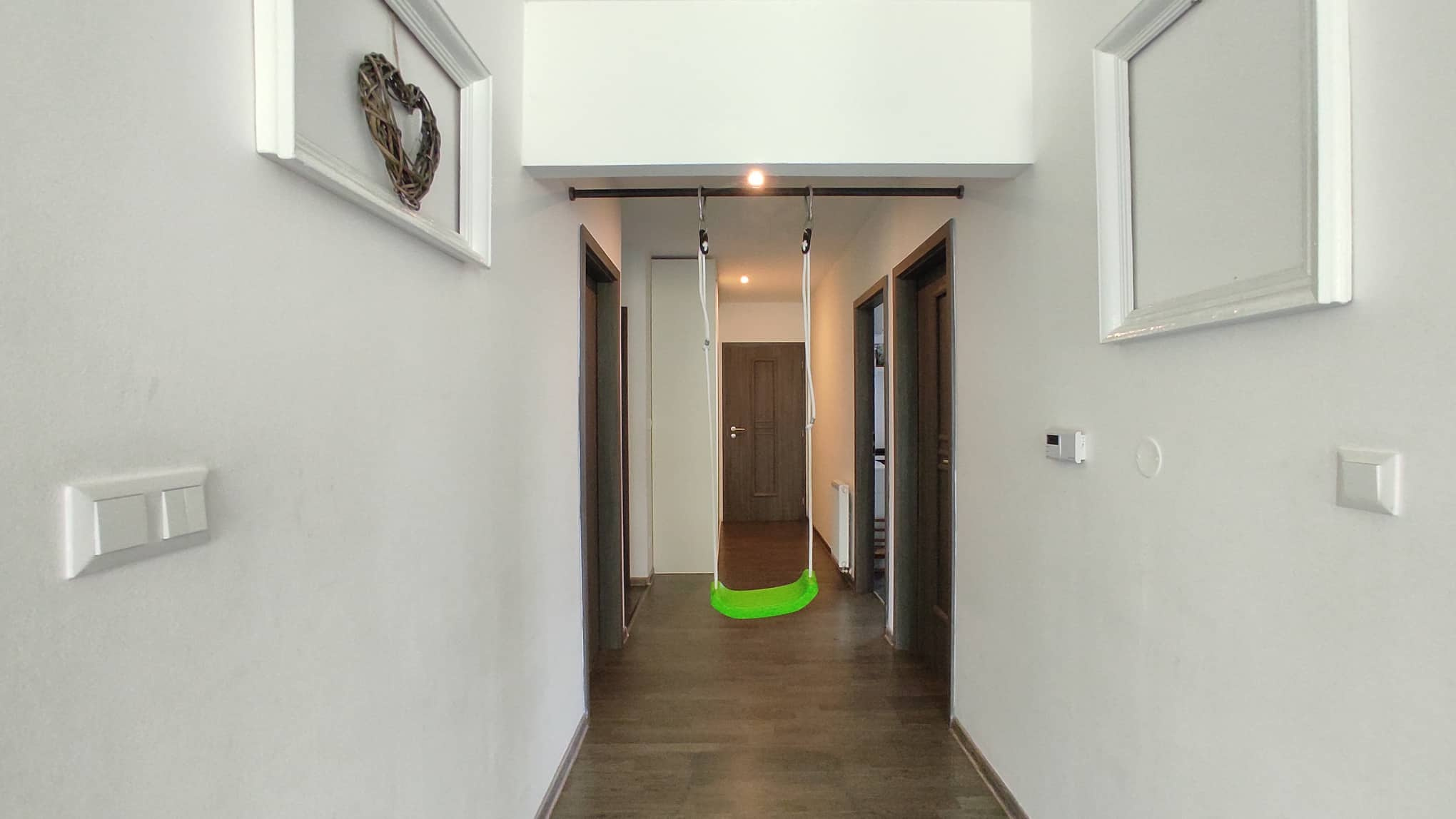 Dům 5+kk, je velmi prostorný a skvěle řešený. Po vstupu vejdete do odděleného zádveří s úložnými prostorami na obuv a dostatečným prostorem pro odkládání oblečení. Následuje velká hala, tvaru písmene L, ze které se vstoupí do 4 samostatných světlých pokojů, koupelny, WC, technické místnosti a na konci domu se rozšiřuje do prostorného obývacího pokoje, jídelny a kuchyně. Vše vkusně a moderně sladěno, jak materiály, tak barvou interiéru. V pokojích a chodbě plovoucí podlahy, koupelna a WC dlažba. V koupelně rohová vana, sprchový kout a dvě vestavná umyvadla. Technická místnost dostatečně prostorná - vejde se i pračka a sušička. Topení lokální, elektřina nebo krb s výměníkovou vložkou na tuhá paliva. Velmi úsporný provoz. Současný majitel topil převážně dřevem - přidává zásobu dřeva na dva roky. Ohřev vody - elektrokotel. voda - vodovod, odpad - ČOV - pro spádovou oblast, neplatí se stočné.