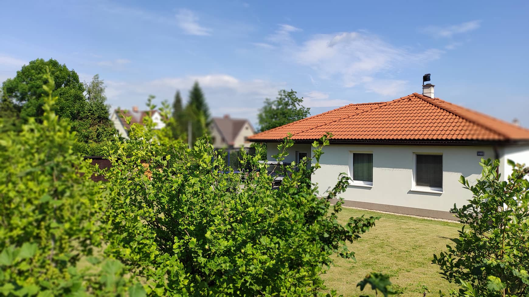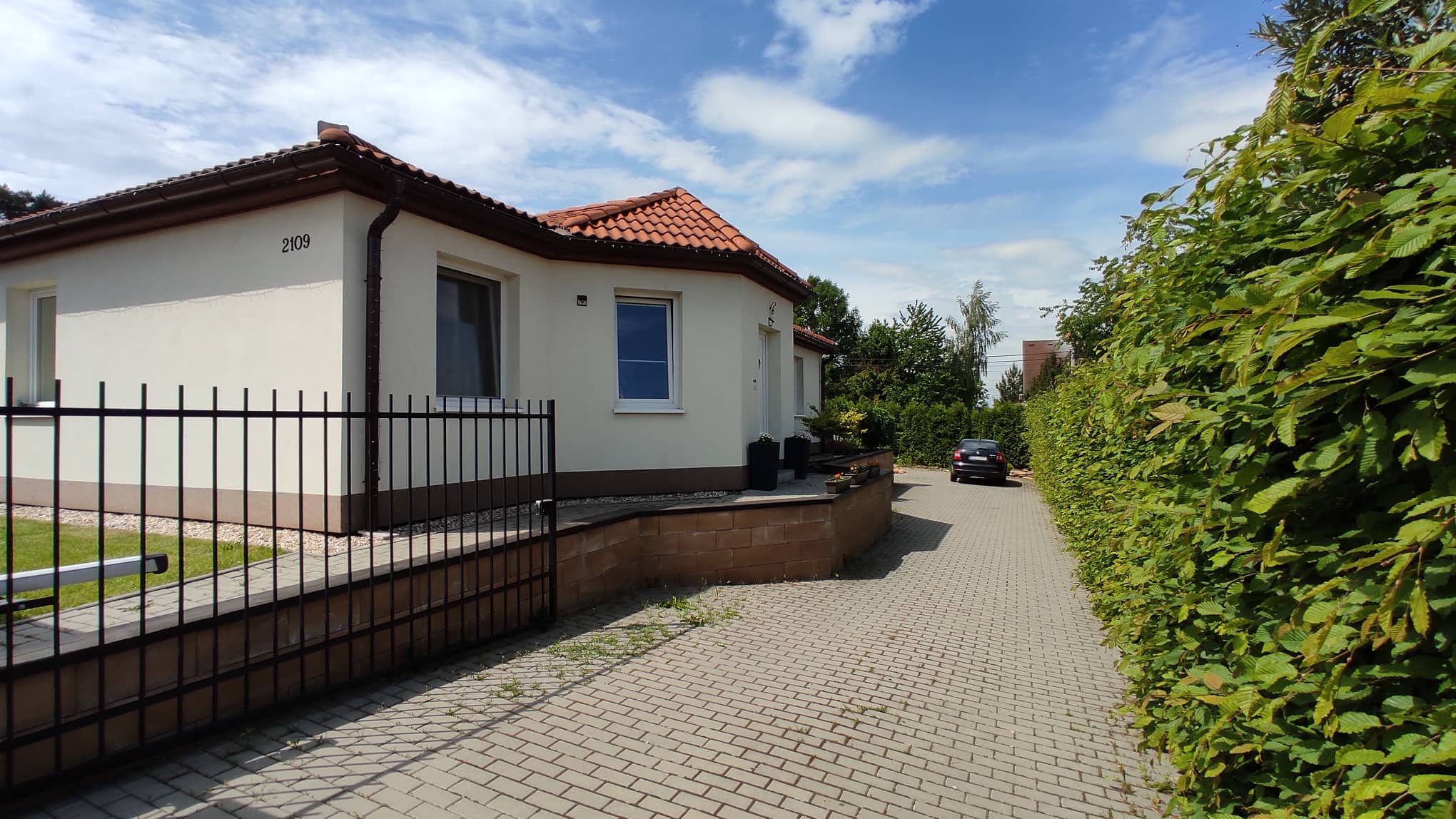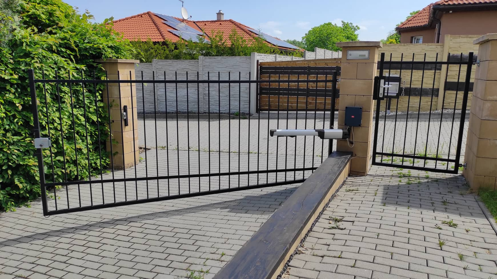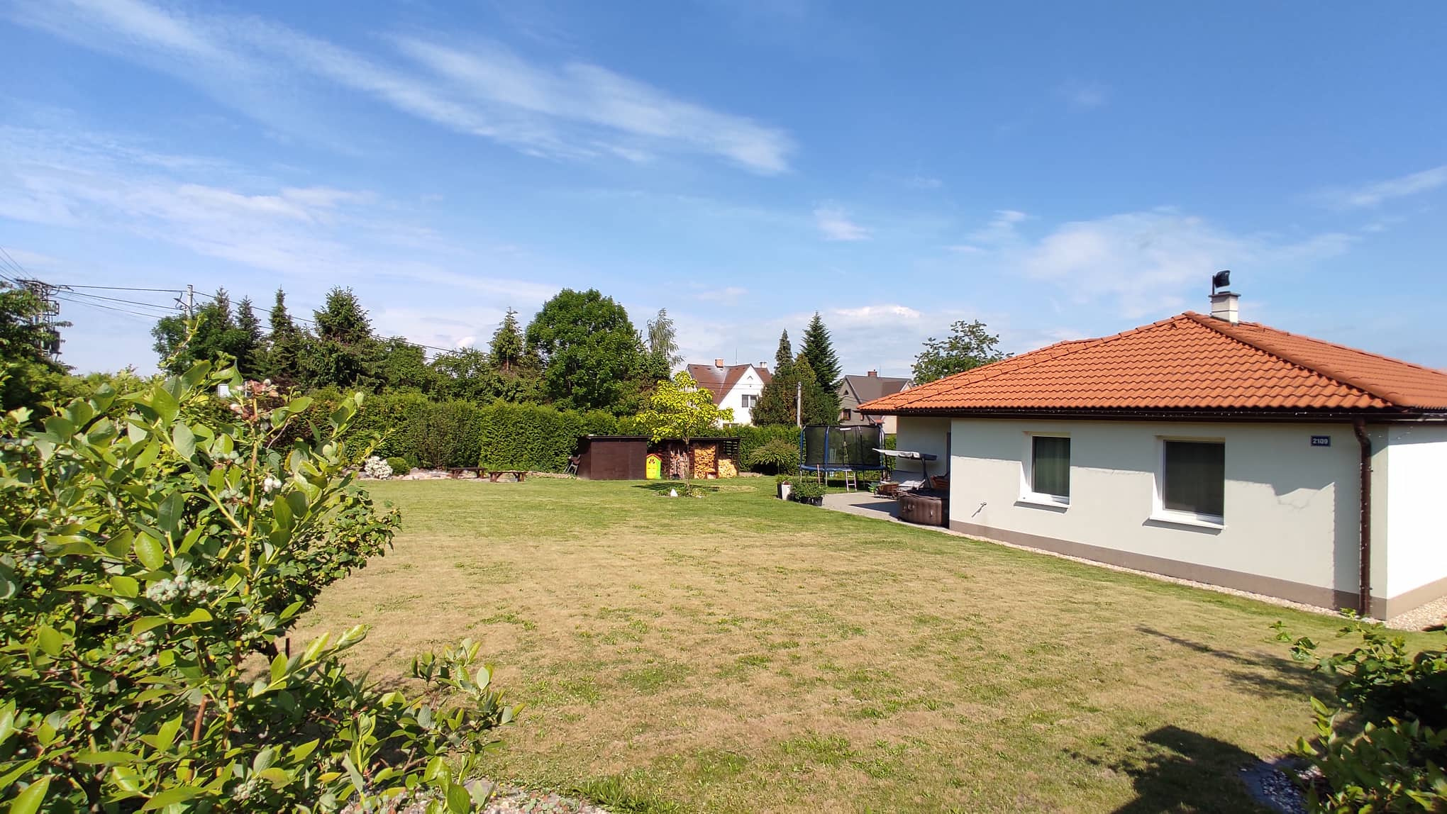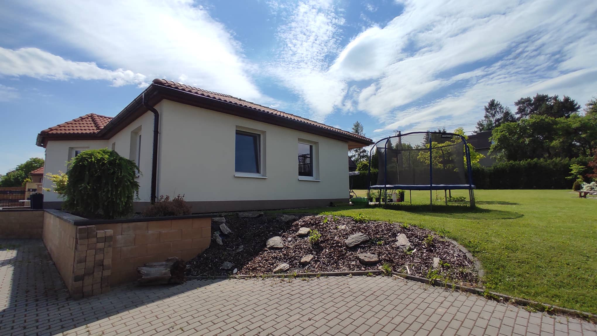 Dům má všechny výhody novostavby a zároveň už jde o zabydlený a odzkoušený dům. Díky kompletním terénním úpravám a zahradě ušetříte dva roky práce s výsadbou, pokládání dlažeb terasy a parkovacích míst a stavění plotu, nehledě na finanční náročnost, jak to u novostaveb bývá. U vjezdu je moderní elektrická brána na dálkové ovládání.