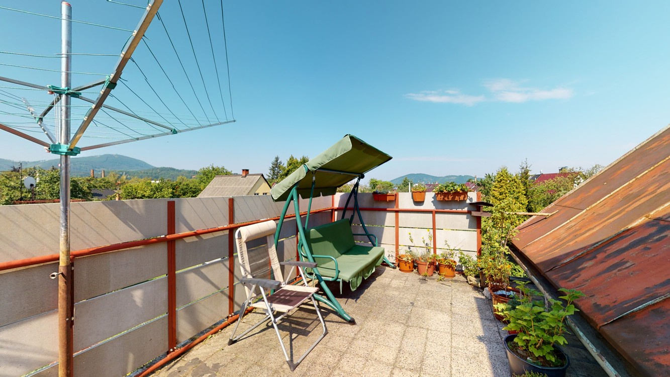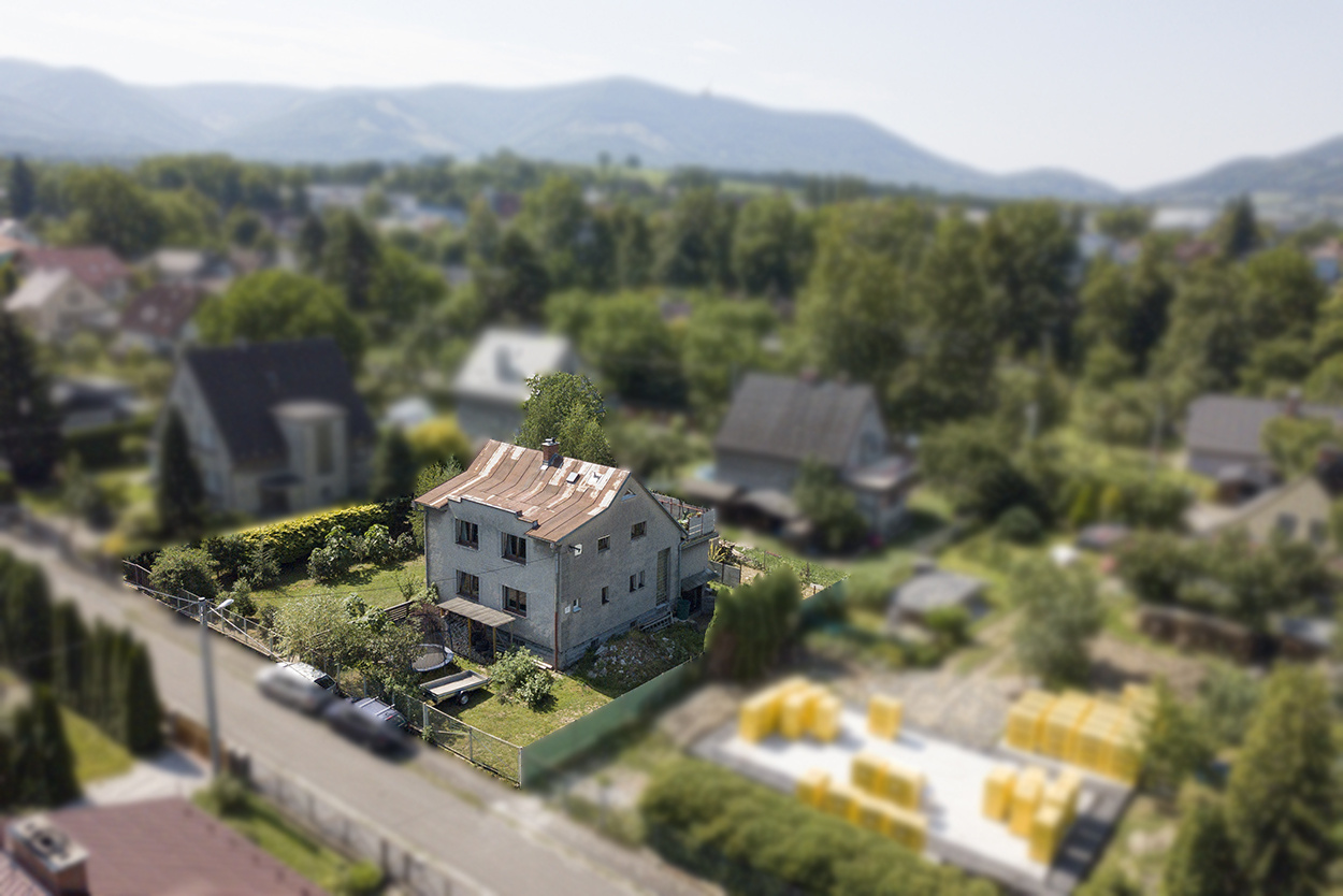 Prodej rodinného domu ve vilkové čtvrti v blízkosti centra města. Dostupnost do centra města do 10 minut chůze. Celková plocha pozemku 614 m2, z toho zastavěná 106 m2. Zahrada je udržovaná, oplocená, okrasná, s krytým posezením, ohništěm a místem pro bazén. Stavba je celá podsklepená, zde se nachází garáž, sklady, dílna. V celém domě jsou vyměněna plastová okna - trojskla, a udělaný nový rozvod elektřiny v patře. Měření spotřeby je možno oddělit pro každé podlaží. V přízemí jsou tři místnosti, v jedné z nich byla kuchyň - možno zřídit znovu, dále vstupní chodba, koupelna, samostatné wc a veranda. Elektřina je v přízemí rozvedena, nejsou dokončeny zásuvky. Jedna místnost je využívaná jako ložnice, další jako pracovna a jedna (bývalá kuchyň) je v rekonstrukci. V patře je byt po celkové rekonstrukci, skládající se z prostorného obývacího pokoje spojeného s kuchyní, dětského pokoje, koupelny a terasy s výhledem na město a hory. Dům je napojen na všechny inženýrské sítě. Vytápění je zajištěno zánovním plynovým kotlem Immergas, které má dva okruhy pro přízemí a pro patro. V obývacím pokoji je krb. V současné době je placeno na zálohách na plyn 2.700,- Kč a na elektřinu 1.700,- Kč a platby kryjí spotřebu. Střešní krytina pozinkovaný plech, je potřeba v budoucnu obnovit nátěr. Dům má kromě rodinného bydlení i potenciál např. na pronájmy dvou bytových jednotek, spojení bydlení v patře s podnikáním v přízemí (ordinace, sídlo firmy, kanceláře, služby). Sklep má okna nad terénem. Na pozemku před domem lze vybudovat parkování pro až 8 aut. Volný může být do měsíce od zaplacení. S financováním můžeme pomoci.
