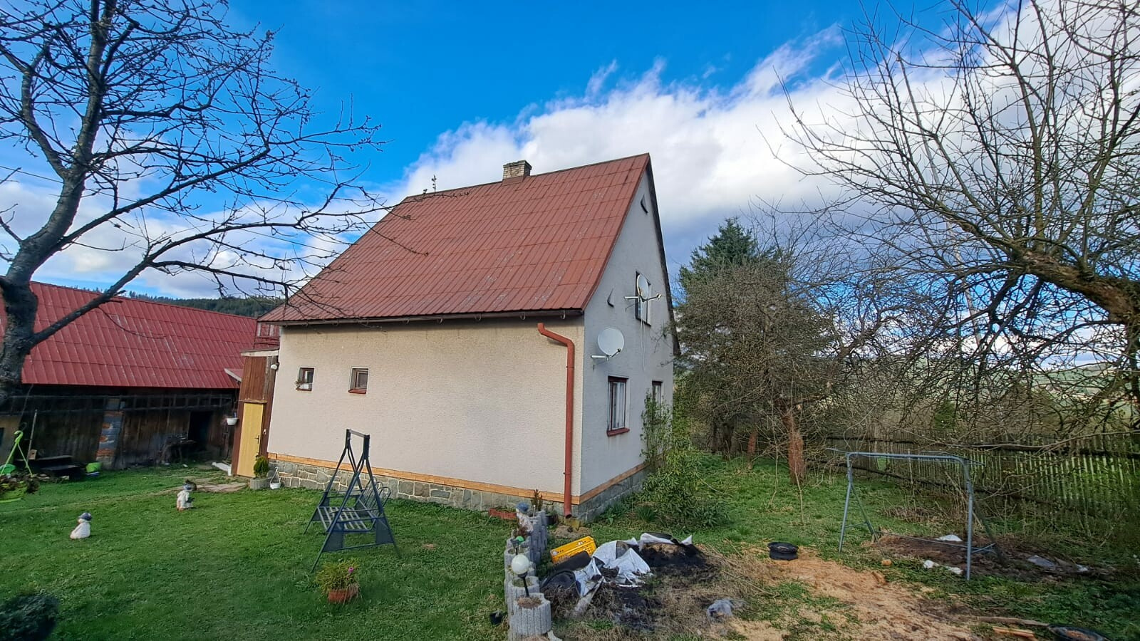 Prodej nemovitosti s číslem popisným na úžasném místě na horském hřebenu s krásnými výhledy, přímo na hranici Slovenské a České republiky – Beskyd a Kysucí, v nadmořské výšce 700 m, 150 m od horské chaty Doroťanka. Celková plocha pozemku 2.450 m2, z toho stavební parcela 657 m2, na které stojí rodinný dům a hospodářská budova. Nemovitost se nachází v katastrálním území Klokočov, okres Čadca. Na pozemku je vlastní studna, plus je přípojka vody z nedaleké studny v lese na pozemku současného majitele a dále dle vyjádření obce je v plánu přivedení veřejného vodovodu. Připojeno na elektřinu, odpady svedeny do žumpy. Vytápění ústřední kotlem na tuhá paliva, v každém podlaží domu ještě kamna. Je připraven nový kotel na výměnu, možnost odkoupení. Příjezd po obecní zpevněné cestě běžným autem, pouze v zimních měsících nutné vozidlo 4x4. Nemovitost je určena ke kompletní rekonstrukci, případně k výstavbě jiné v rámci stavební parcely. V okolí nádherná příroda, turistické i cyklo trasy, vede zde i Stezka Českem. Výhodou blízká chata s možností stravování. Zvu Vás na prohlídku tohoto jedinečného místa ve zdravém prostředí.